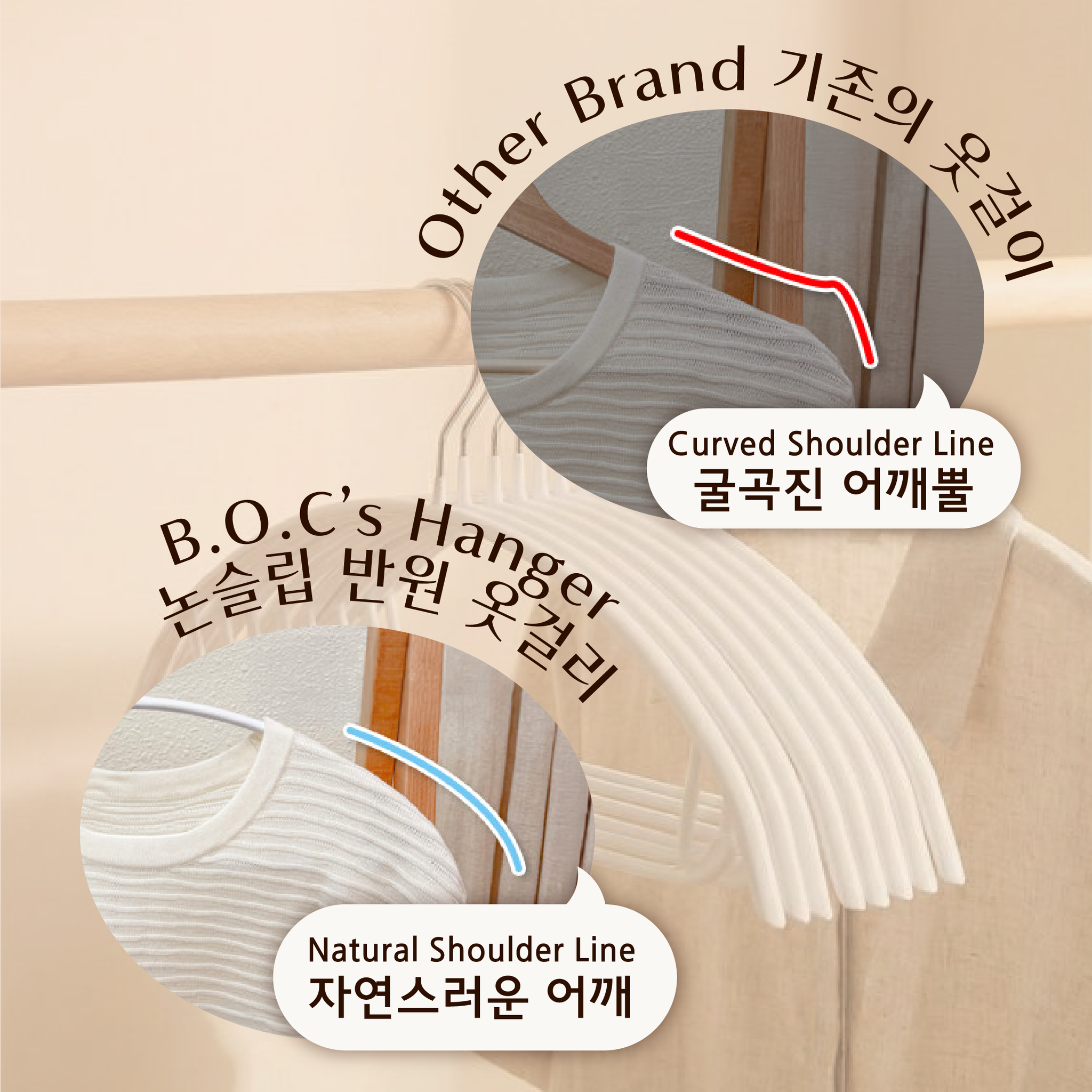 옷장 정리가 스트레스라면? 정답은 옷걸이 교체부터! 둥근 반원 형태라 니트나 셔츠 어깨가 튀어나오는 '어깨뿔' 걱정이 전혀 없어요. 🧶✨목요일까지 주문하시면 10퍼센트 할인된 가격에 만나보실 수 있어요!